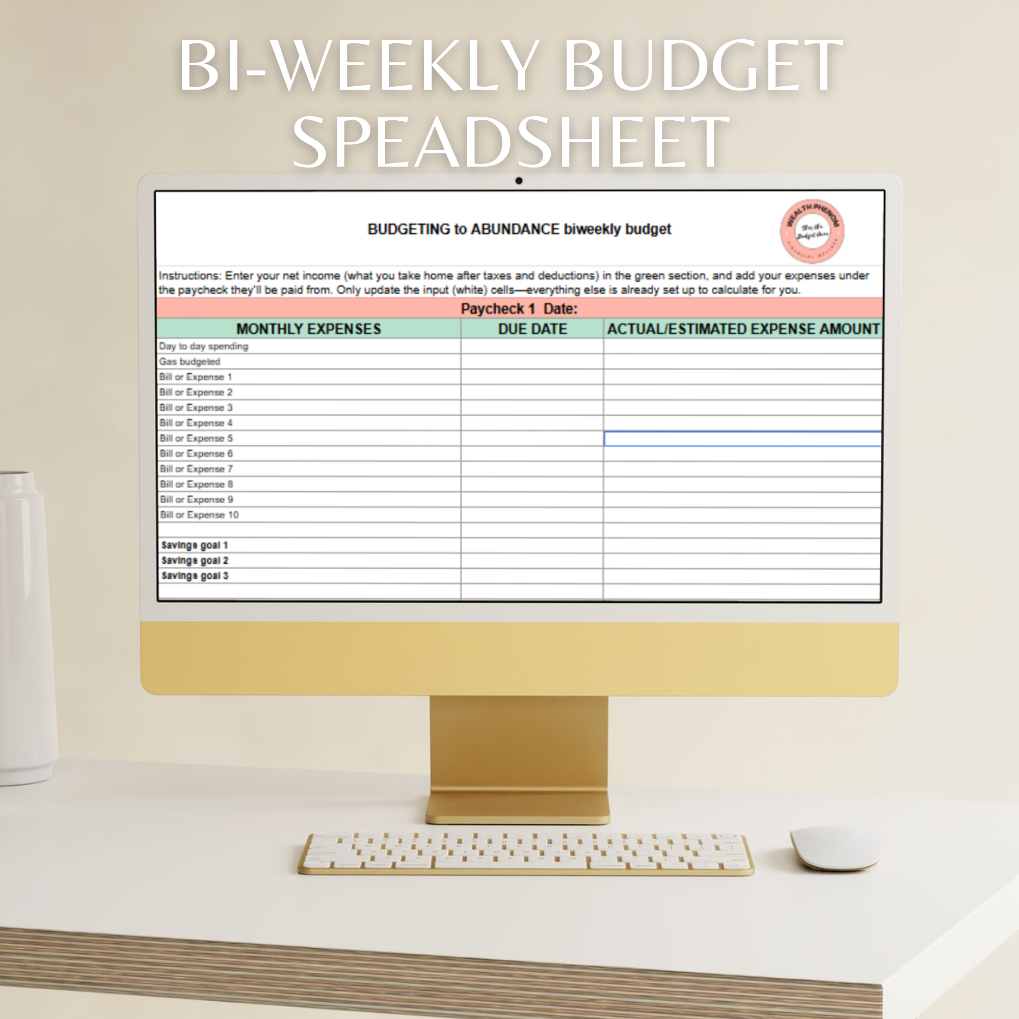 Get the Budgeting to Abundance Biweekly Budget Template for just $4.99.